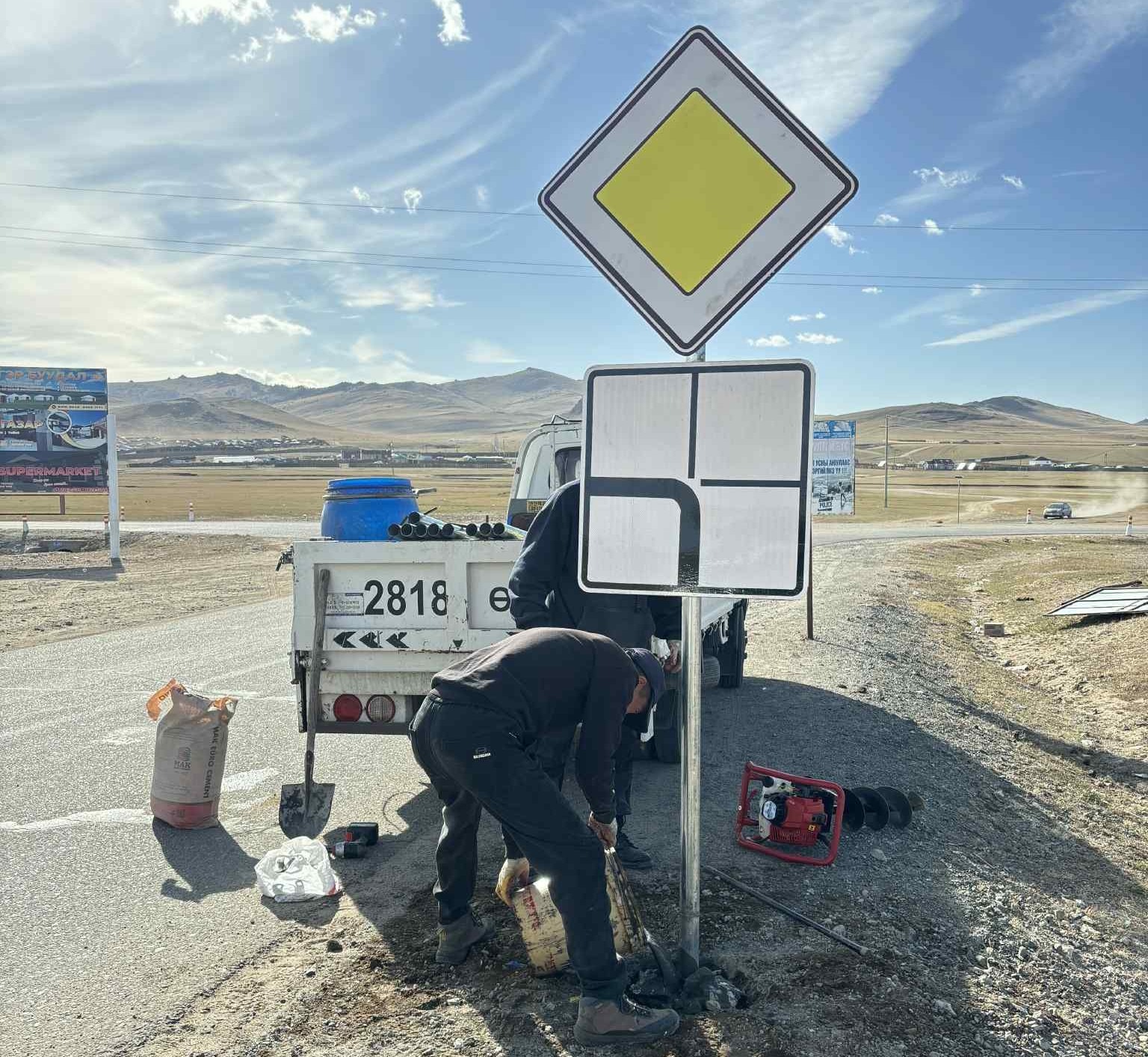Сумын Гэмт хэргээс урьдчилан сэргийлэх ажлыг зохицуулах салбар зөвлөлөөс замын хөдөлгөөний аюулгүй байдлыг хангах зорилгоор сумын төвийн авто зам дагуу зам тавьж өгнө үү тэмдэг 7 ширхэг, гол замын тэмдэг 3 ширхэг, гол замын чиглэлийн тэмдэг 1 ширхэг шинээр суулгалаа.